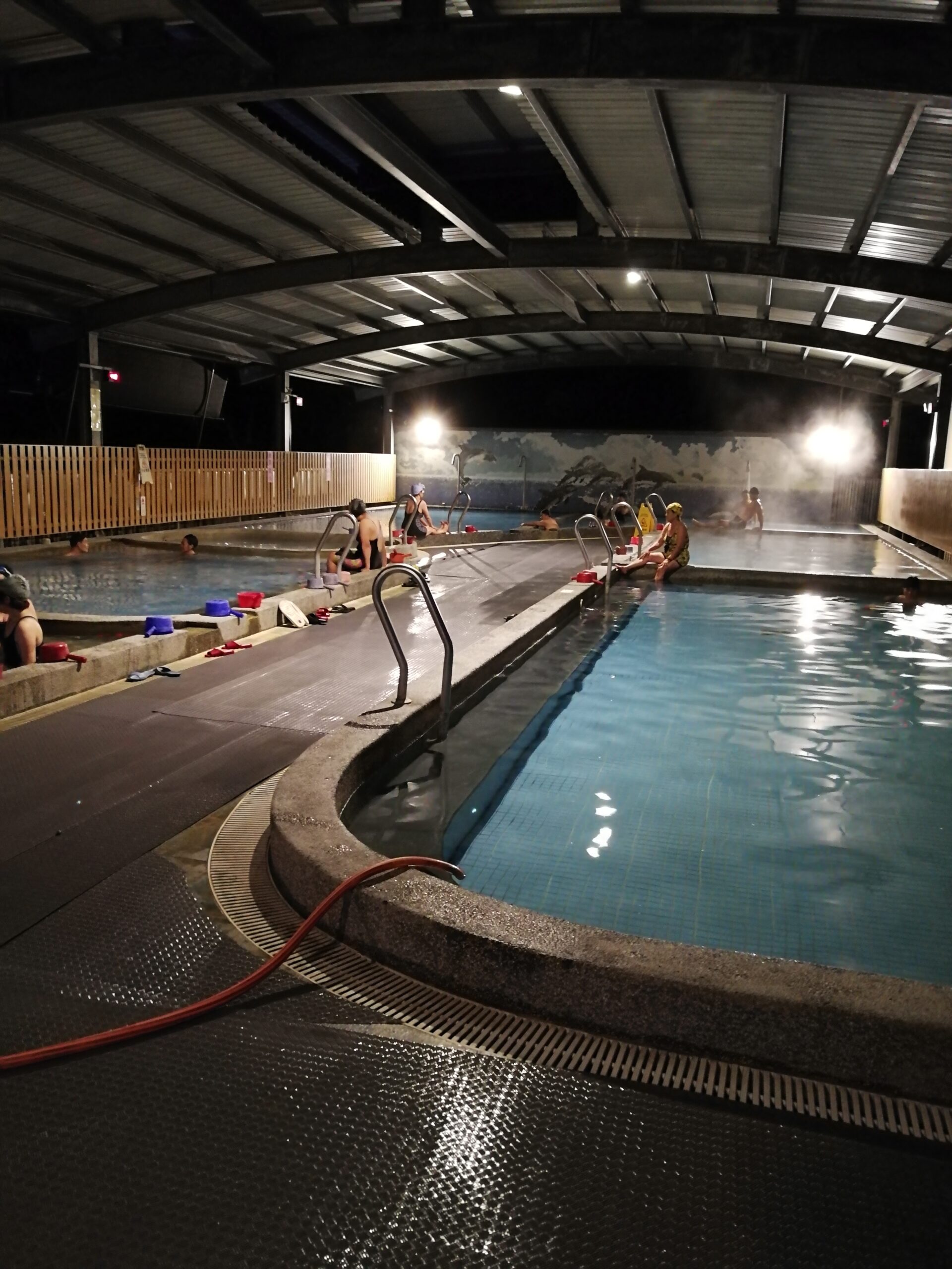そして大浴場横にはキャンプテーブルと椅子が並ぶピクニックエリア。全天候型というか、建物もあってそこで大音量でカラオケが。台湾の温泉では、なぜかカラオケをしているのをよく見かけます。この宿のように別の場所でやってくれるならともかく、浴槽のすぐ横でカラオケをしているのを見たこともあります。感電しそうで怖かった。